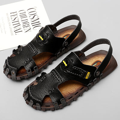 Men's Business Casual Hollow Work With Holes Leather Sandals