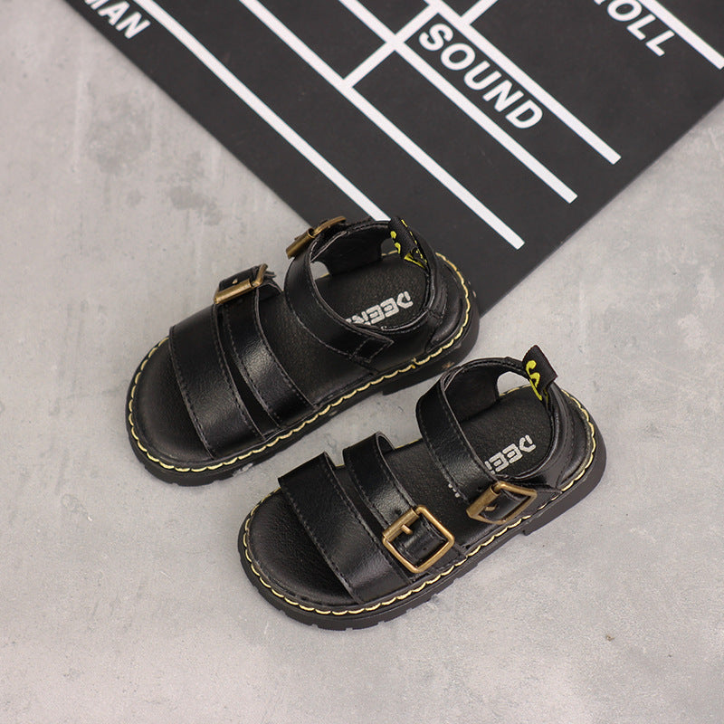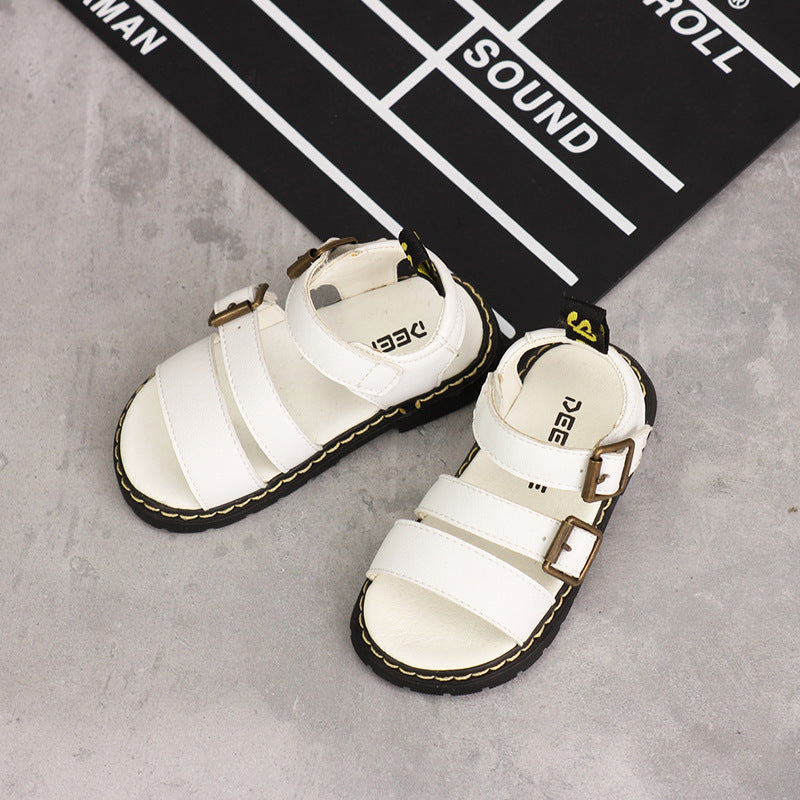 Product Information: Applicable age: Middle children's clothing (7-12 years old), small children's clothing (4-6 years old) Applicable gender: Neutral/male and female Upper material: Microfiber leather Function: Breathable, light, non-slip Sole Material: Rubber Wearing style: Velcro Popular elements: Metal Color: White, Black, Brown Style: Korean Product category: Beach shoes Size Information: Size: 21,22,23,24,25,26,27,28,29,30