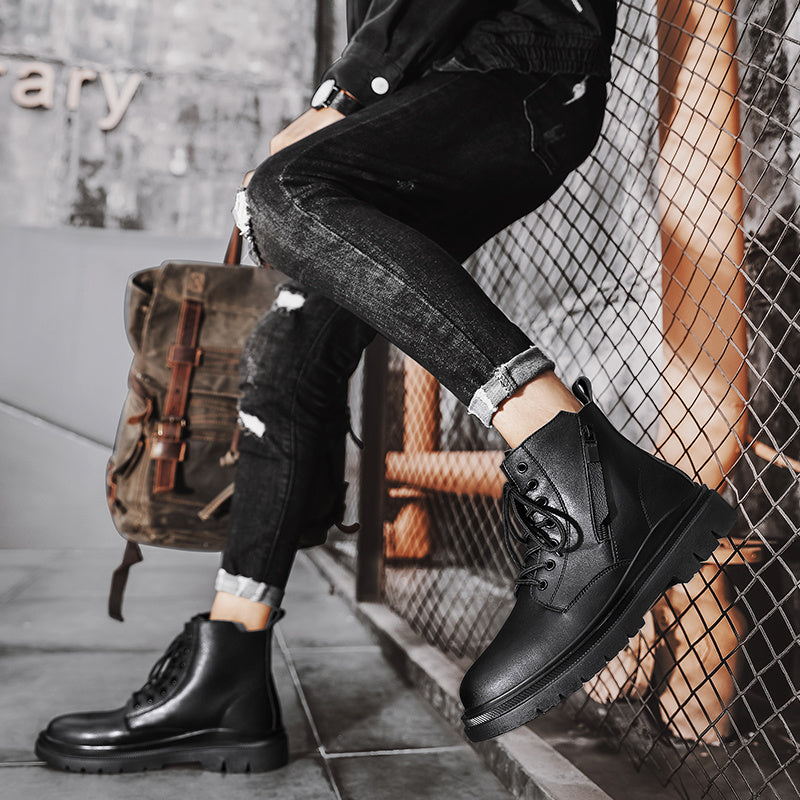 Product information: Function: breathable Closure method: tether Color classification: black Style: Martin boots Material: two-layer cow leather Dimension information: Size: 38 39 40 41 42 43 44 45 46