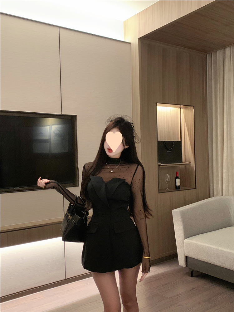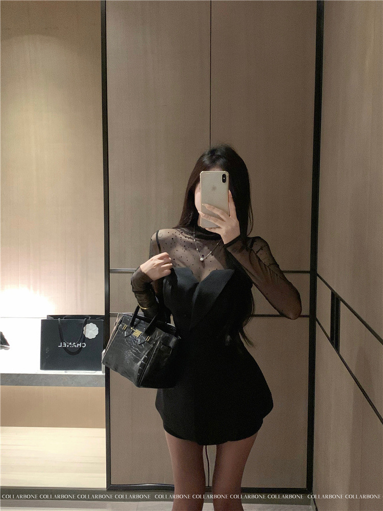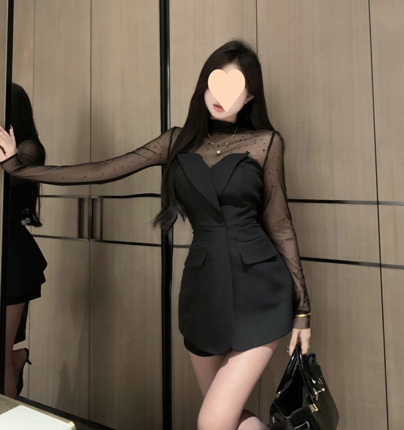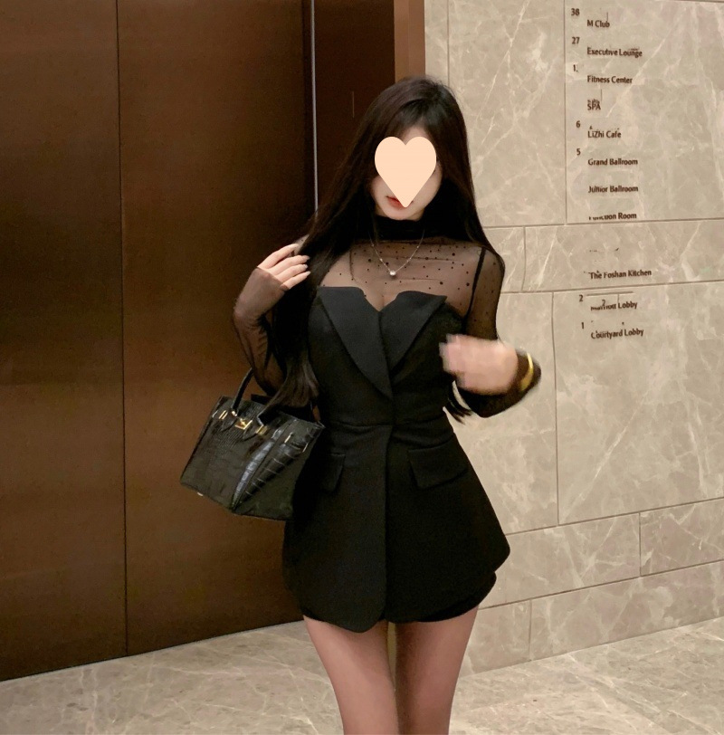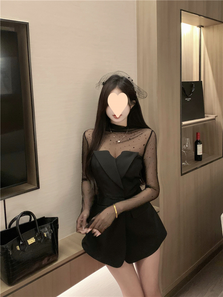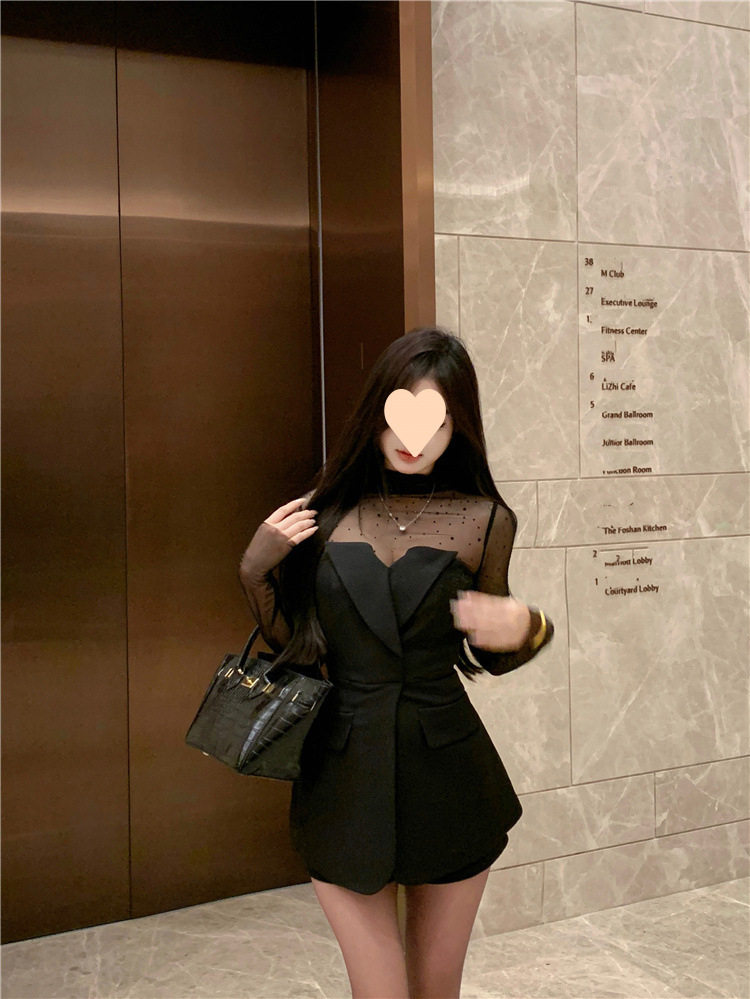 Product information: Fabric name: Polyester (polyester fiber) Color: Small v tube top suit [high quality fabric, hot drilling mesh top, tube top suit mesh top, tube top suit mesh top suspender shorts Sleeve type: Flight sleeve Pants length: trousers Main fabric composition: Polyester (polyester fiber) Size: S 78-93,M 93-108,L 108-120 Applicable Gender: Female Sleeve length: long sleeve Popular elements: Diamonds Style: urban style