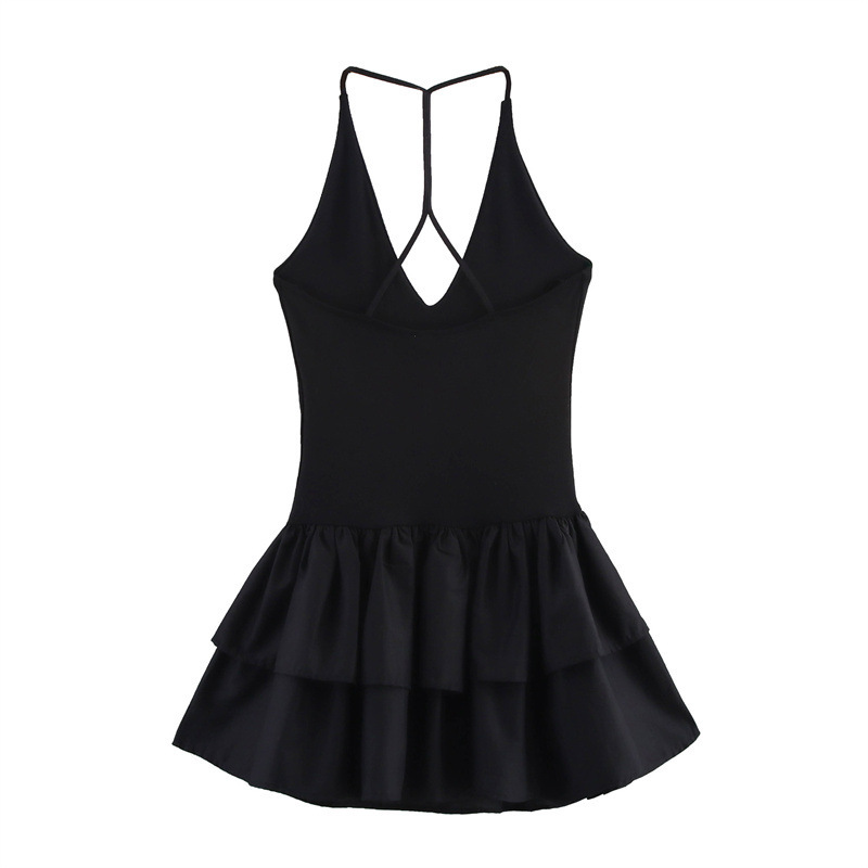 Stitching Hanging Collar Dress Women